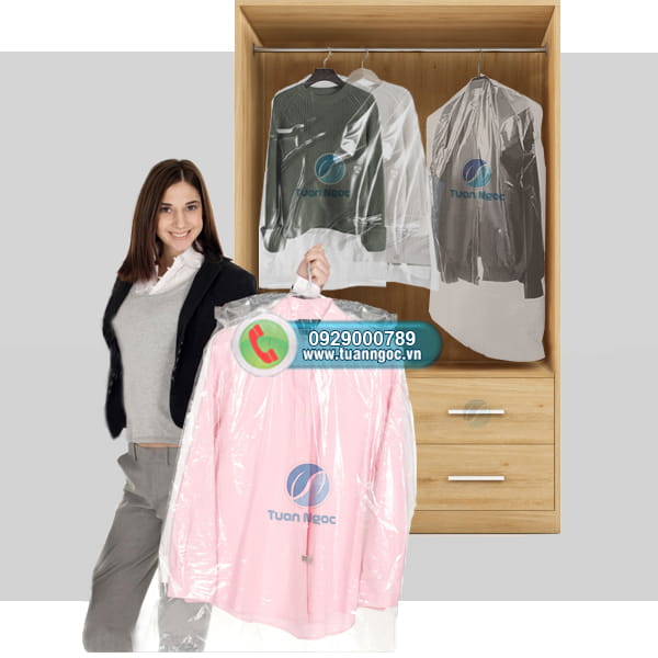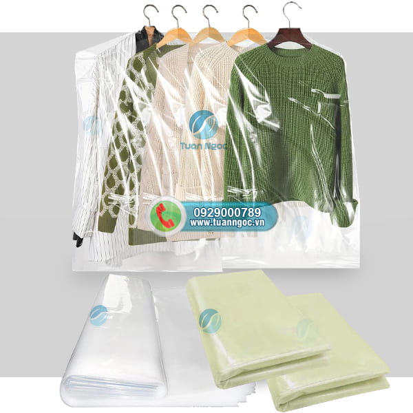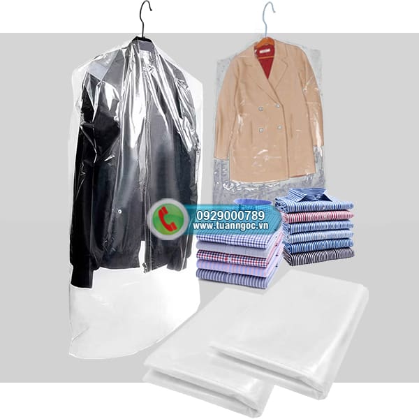 Túi nilon cỡ lớn bọc ngoài quần áo treo tủ giúp chống bụi bẩn, ẩm ướt tố hơn. Có sẵn nhiều cỡ túi và chất liệu để phủ kín quần dài, áo kích thước lớn