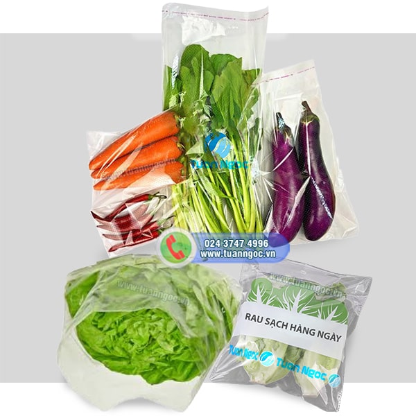 Lựa chọn cỡ túi phù hợp để đóng gói nông sản như : rau sạch, củ, quả tươi với trọng lượng vừa đủ. Túi PE/PP miệng phẳng có thể hàn miệng túi bằng máy hàn nhiệt. Đối với túi OPPcó sẵn băng dính dán miệng sau khi để rau vào bên trong.